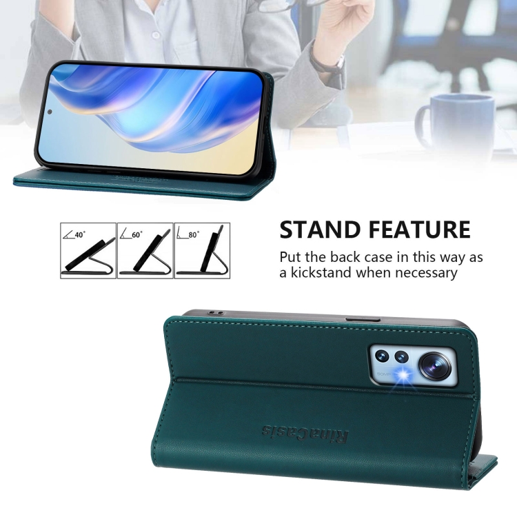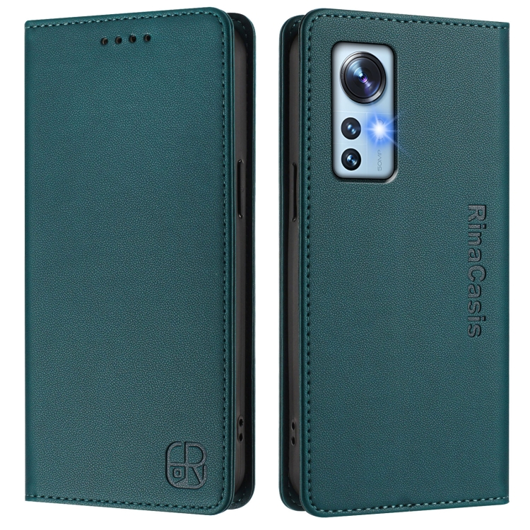 Funda de Cuero con Doble Pliegue y Succión Magnética para Teléfono Xiaomi 12 5G / 12X 5G / 12S 5G Rc01 (Verde Oscuro)