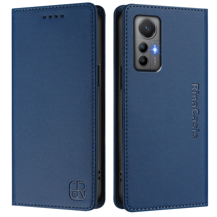 Funda de Cuero con Doble Pliegue y Succión Magnética para Teléfono Xiaomi 12 Lite Rc01 (Azul Oscuro)