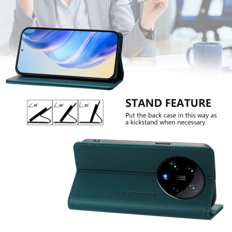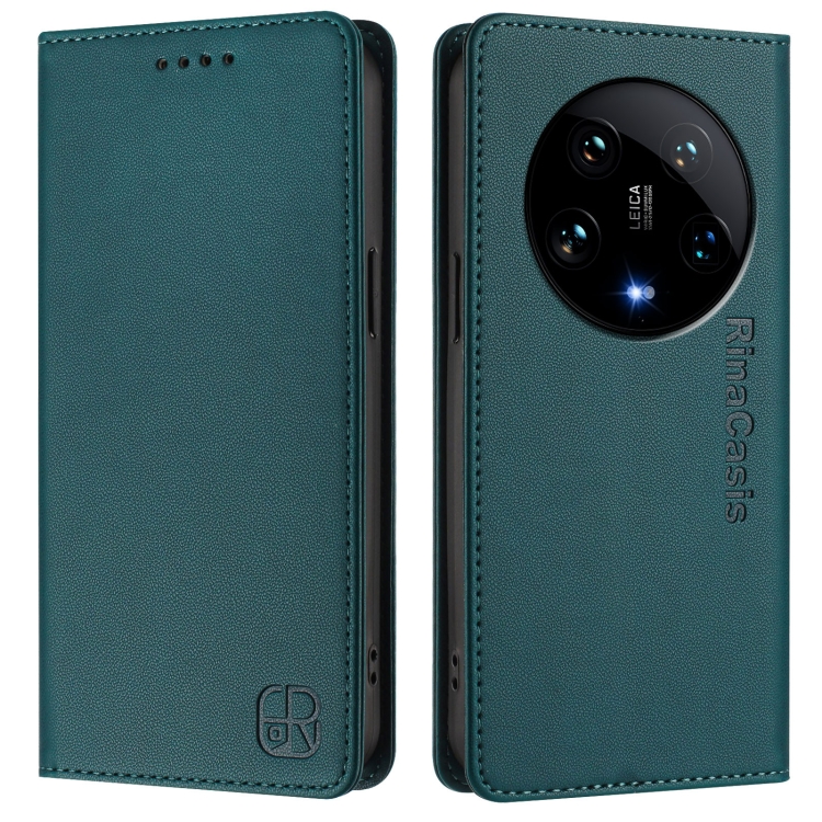 Funda De Cuero Con Doble Pliegue Y Succión Magnética Para Teléfono Xiaomi 14 Ultra 5G Rc01 (Verde Oscuro)