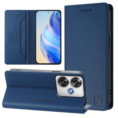 Funda de Cuero con Doble Pliegue y Succión Magnética para Teléfono Xiaomi Poco F6 5G Rc01 (Azul Oscuro)