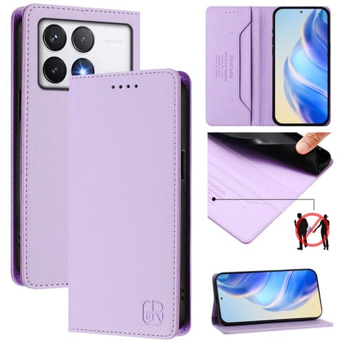 Funda de Cuero con Doble Pliegue y Succión Magnética para Teléfono Xiaomi Poco F6 Pro 5G Rc01 (Morado Claro)