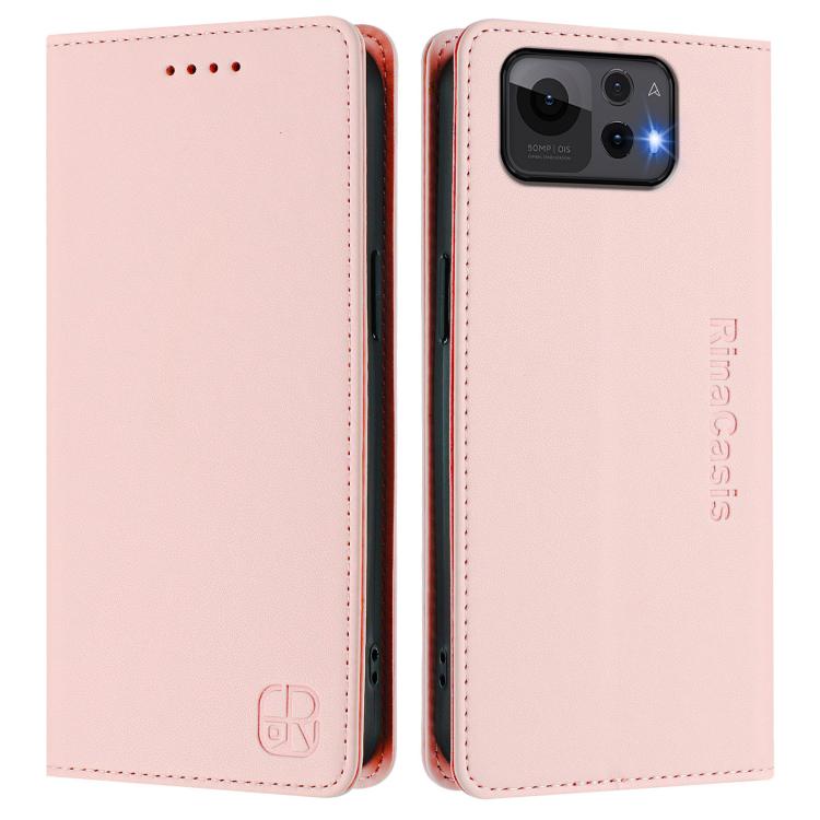 Funda de Cuero con Doble Pliegue y Succión Magnética Rfid para Asus Zenfone 12 Ultra Rc01 (Rosa)