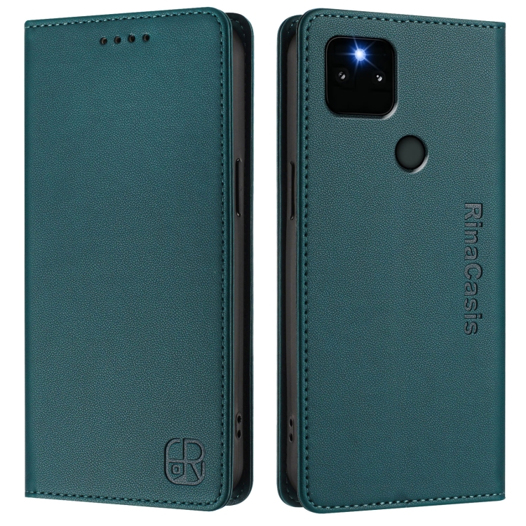 Funda de Cuero con Doble Pliegue y Succión Magnética Rfid para Google Pixel 5A Rc01 (Verde Oscuro)