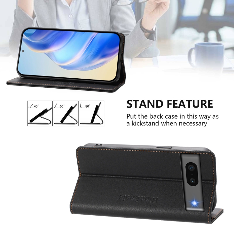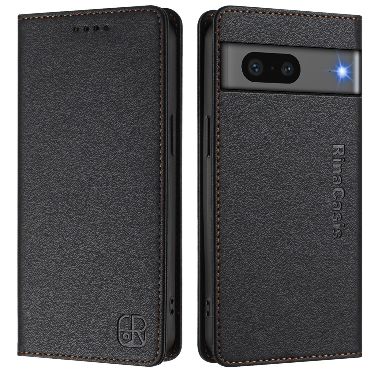 Funda de Cuero para Google Pixel 7 Rc01 con Doble Pliegue y Succión Magnética Rfid (Negra)