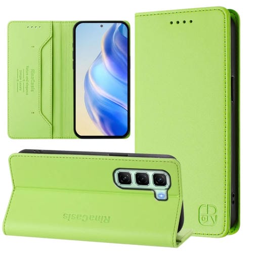 Funda de Cuero con Doble Pliegue y Succión Magnética RFID para Infinix Hot 50 4G Rc01 (Verde Hierba)