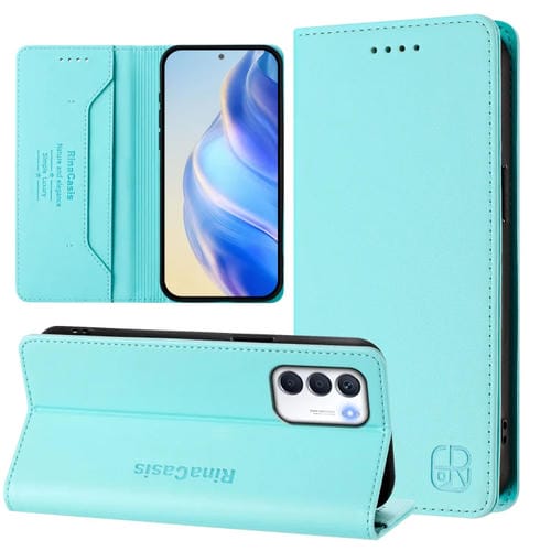 Funda de Cuero con Doble Pliegue y Succión Magnética RFID para Infinix Zero 5G 2023 Rc01 (Verde Menta)