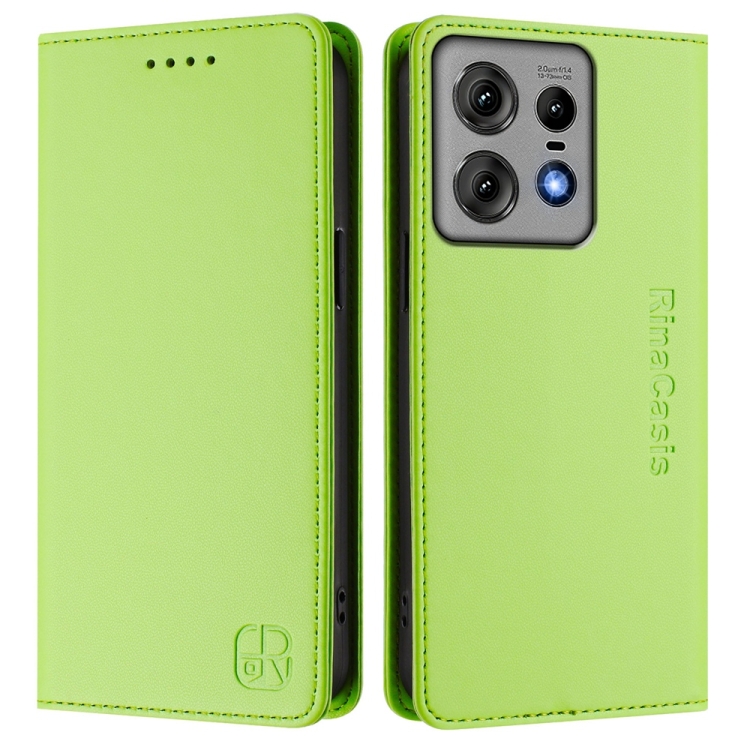 Funda de Cuero con Doble Pliegue y Succión Magnética Rfid para Motorola Edge 50 Pro Rc01 (Verde Hierba)