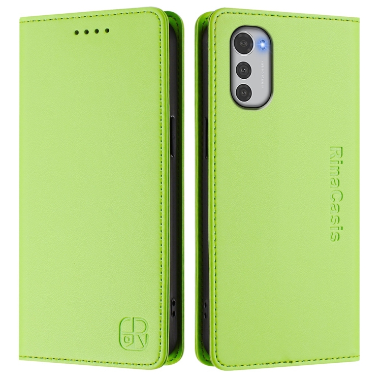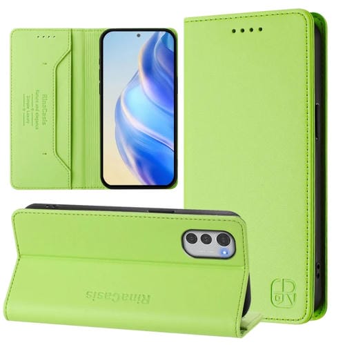 Funda de Cuero con Doble Pliegue y Succión Magnética Rfid para Motorola Moto E32 Global Rc01 (Verde Hierba)