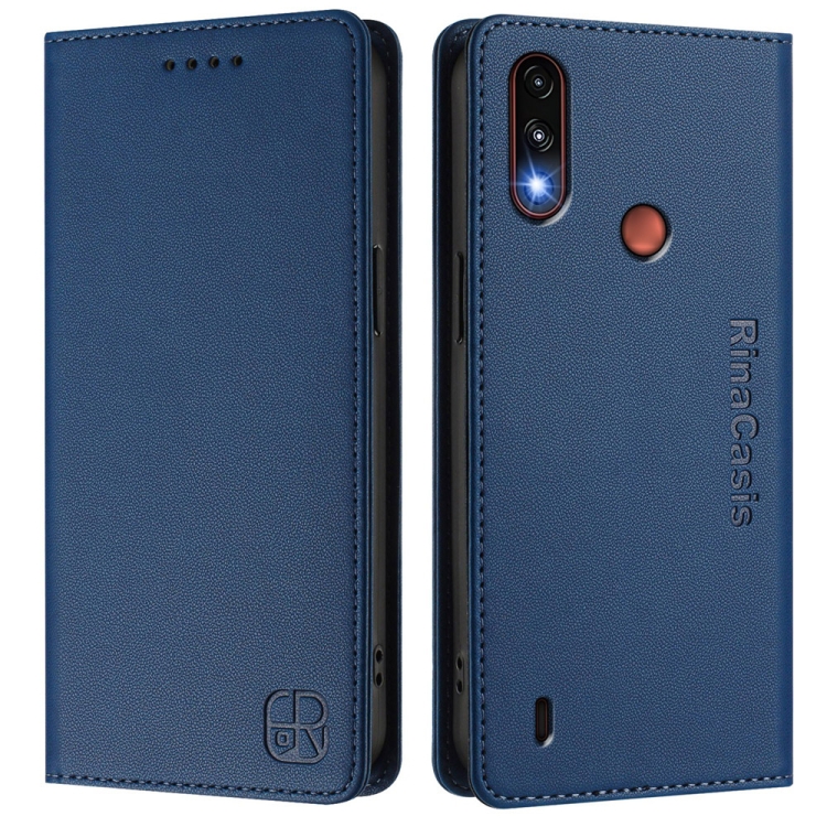 Funda de Cuero para Motorola Moto E7 Power Rc01 con Doble Pliegue y Succión Magnética Rfid (Azul Oscuro)