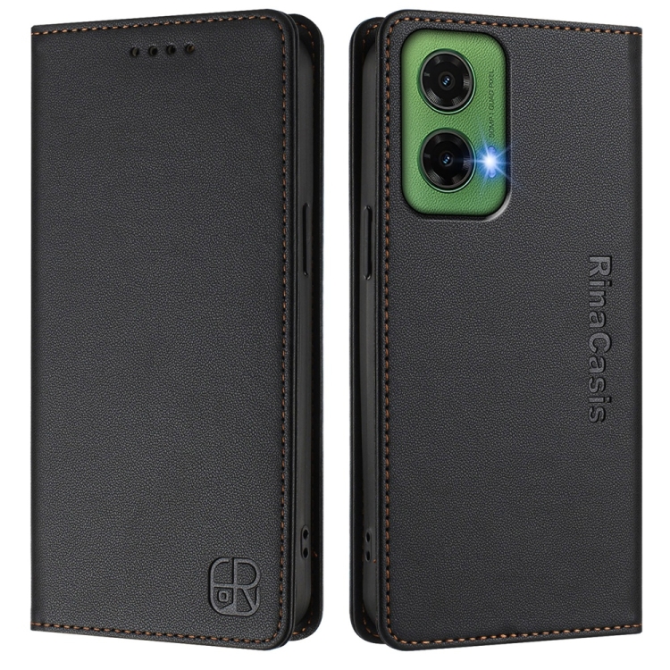 Funda de Cuero Motorola Moto G35 Rc01 con Doble Pliegue y Succión Magnética Rfid (Negra)