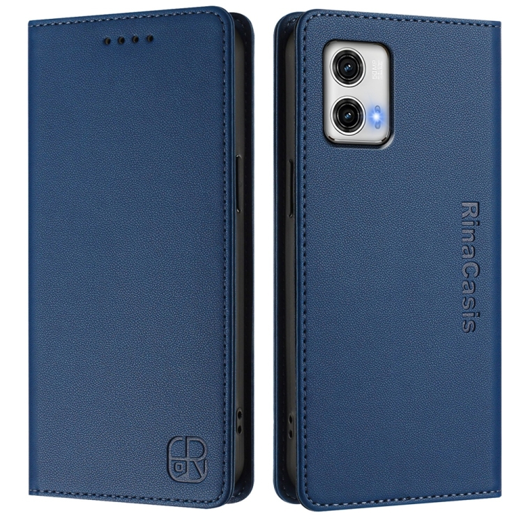 Funda de Cuero Motorola Moto G73 Rc01 con Doble Pliegue y Succión Magnética Rfid (Azul Oscuro)