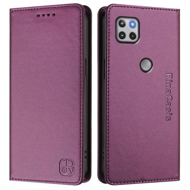 Funda de Cuero Motorola One 5G Ace Rc01 con Doble Pliegue y Succión Magnética Rfid (Violeta)