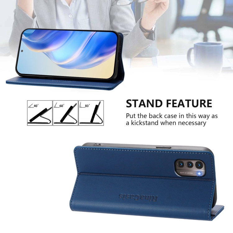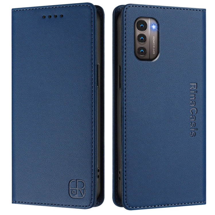 Funda de Cuero con Doble Pliegue y Succión Magnética Rfid para Nokia G11/G21 Rc01 (Azul Oscuro)