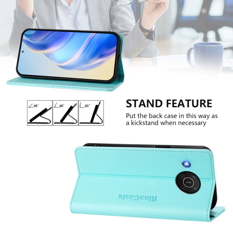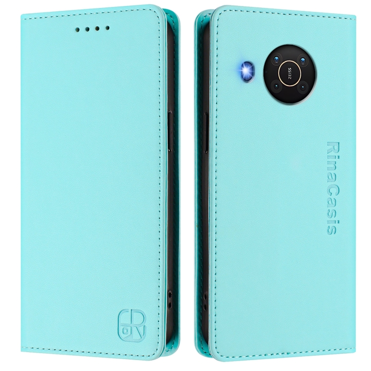 Funda de Cuero con Doble Pliegue y Succión Magnética Rfid para Nokia X20/X10 Rc01 (Verde Menta)