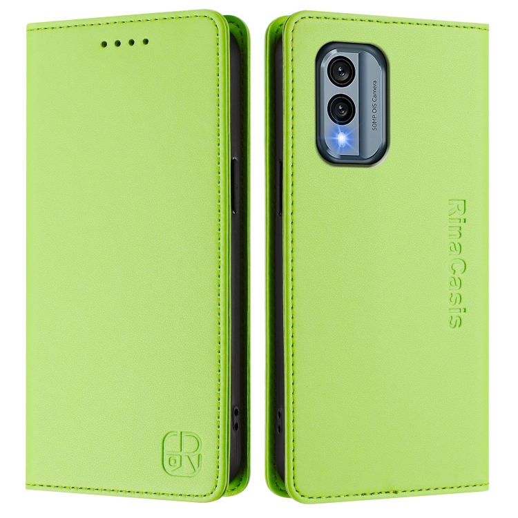 Funda de Cuero con Doble Pliegue y Succión Magnética RFID para Nokia X30 5G Rc01 (Verde Hierba)