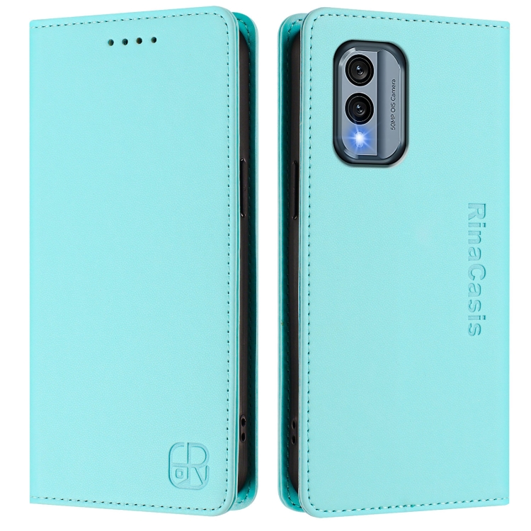 Funda de Cuero Nokia X30 5G Rc01 con Doble Pliegue y Succión Magnética Rfid (Verde Menta)