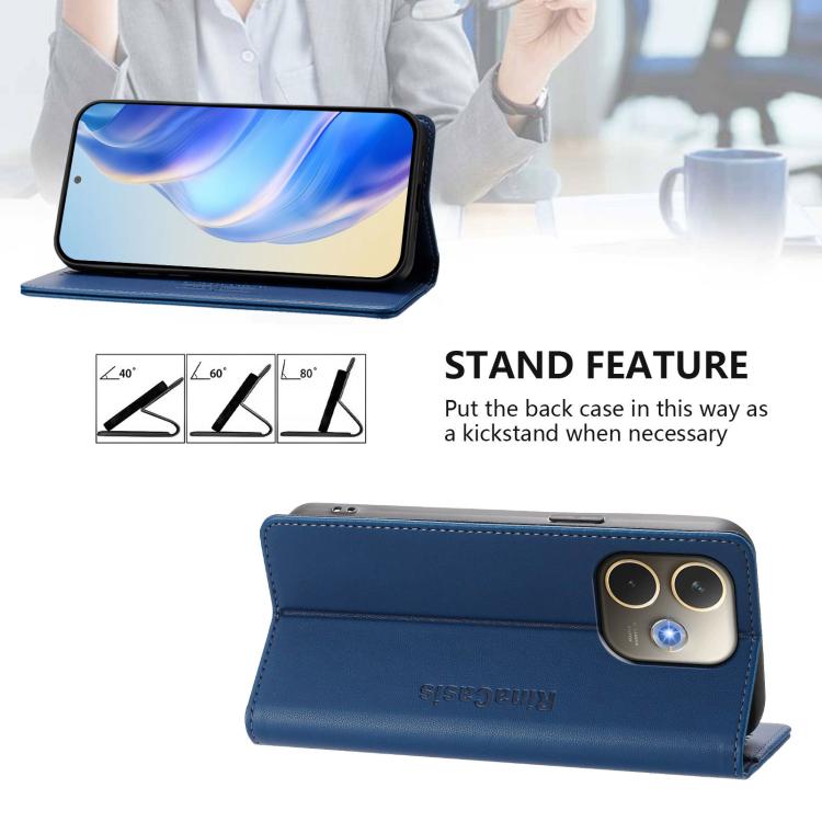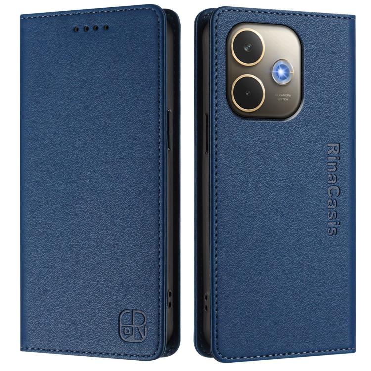 Funda de Cuero con Doble Pliegue y Succión Magnética Rfid para Oppo A5 Pro 5G Global Rc01 (Azul Oscuro)