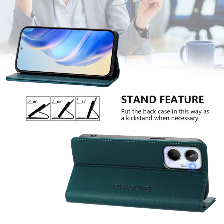 Funda de Cuero con Doble Pliegue y Succión Magnética Rfid para Realme 10 4G Global Rc01 (Verde Oscuro)