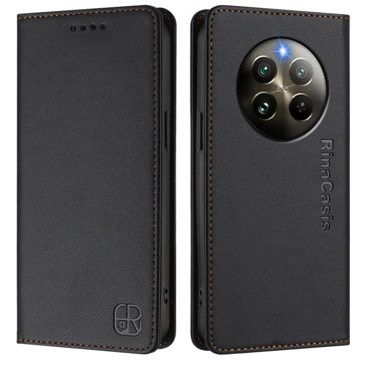 Funda de Cuero con Doble Pliegue y Succión Magnética Rfid para Realme 12+ 5G / Narzo 70 Pro 5G Indian Rc01 (Negra)