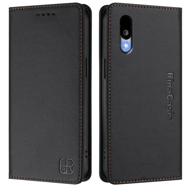 Funda de Cuero para Sharp Basio Active3 Rc01 con Doble Pliegue y Succión Magnética Rfid (Negra)