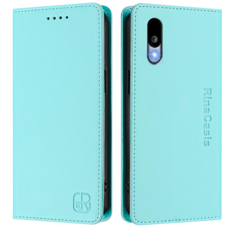 Funda de Cuero para Sharp Basio Active3 Rc01 con Doble Pliegue y Succión Magnética Rfid (Verde Menta)