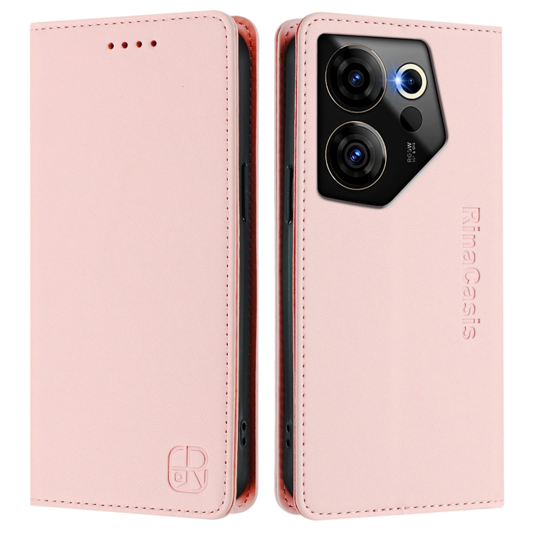 Funda de Cuero RFID para Tecno Camon 20 Premier 5G Rc01 con Doble Pliegue y Succión Magnética (Rosa)