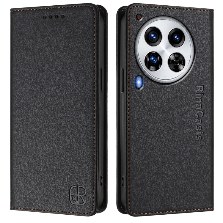 Funda de Cuero con Doble Pliegue y Succión Magnética Rfid para Tecno Camon 30 Premier 5G Rc01 (Negra)
