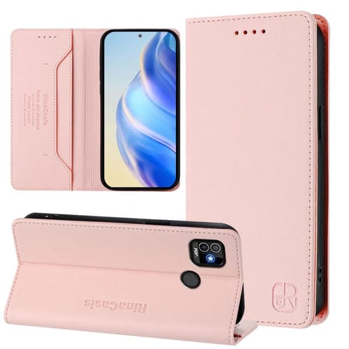 Funda de Cuero con Doble Pliegue y Succión Magnética RFID para Tecno Pop 5 Rc01 (Rosa)