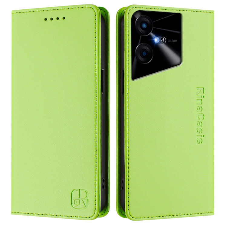 Funda de Cuero Rfid para Tecno Pova Neo 3 Rc01 con Doble Pliegue y Succión Magnética (Verde Hierba)