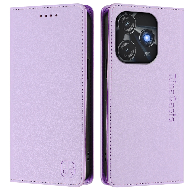 Funda de Cuero Rfid con Doble Pliegue y Succión Magnética para Tecno Spark 10C / 10 4G Rc01 (Morado Claro)