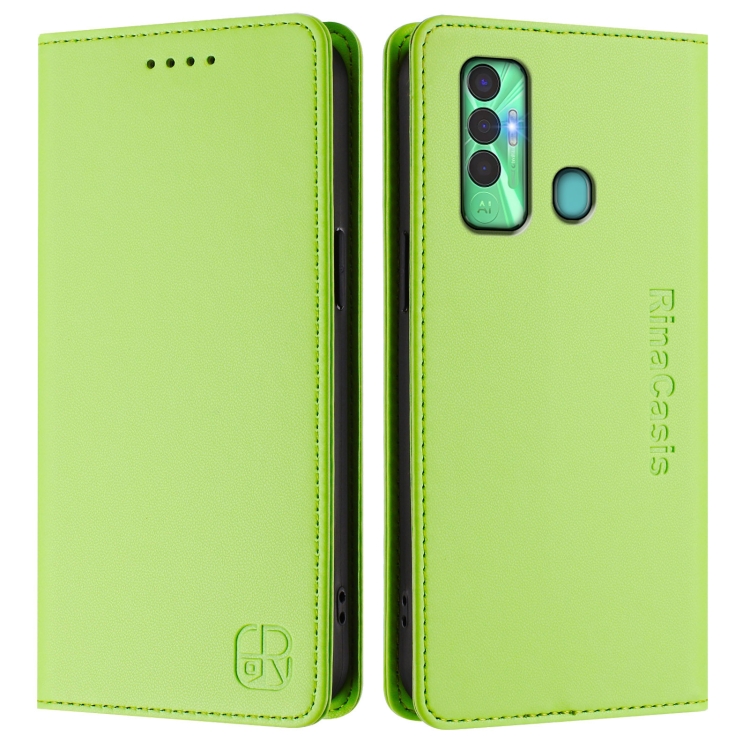 Funda de Cuero Rfid para Tecno Spark 7P Rc01 con Doble Pliegue y Succión Magnética (Verde Hierba)