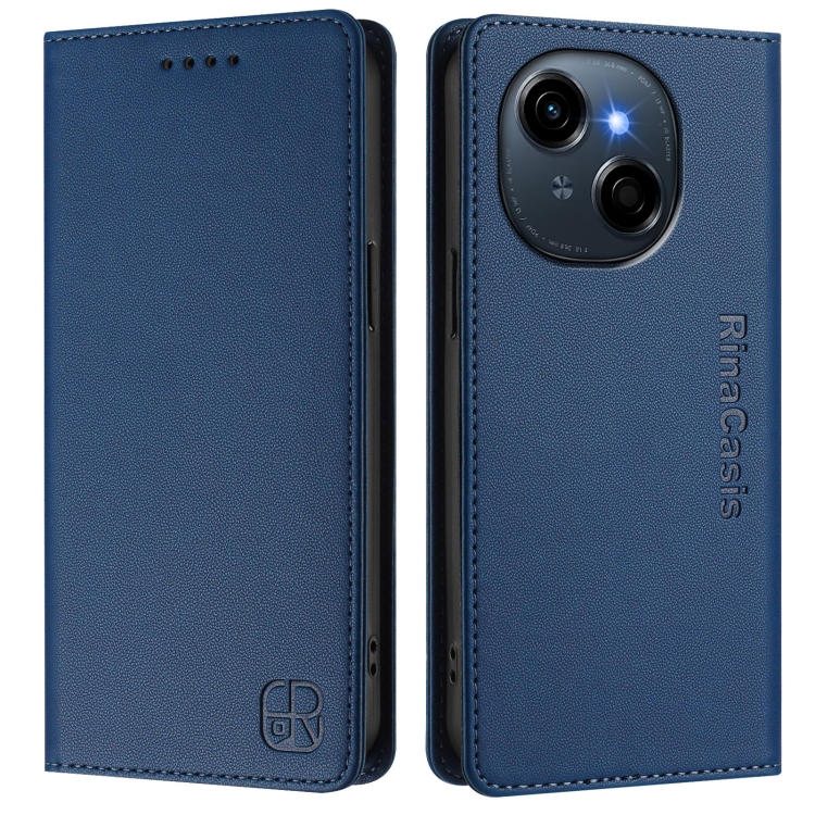 Funda de Cuero Rfid para Tecno Spark Go 1 / 2025 / Pop 9 Rc01 con Doble Pliegue y Succión Magnética (Azul Oscuro)