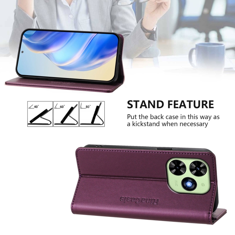 Funda de Cuero Rfid para Tecno Spark Go 2024 4G Rc01 con Doble Pliegue y Succión Magnética (Violeta)