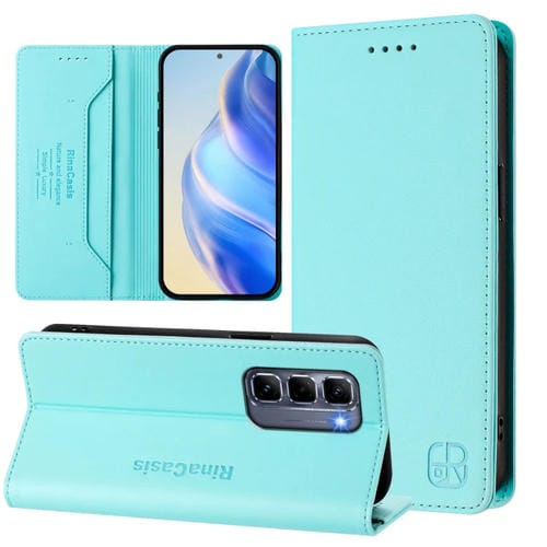 Funda de Cuero Infinix Hot 50 Pro+ 4G Rc01 con Doble Pliegue y Succión Magnética Rfid (Verde Menta)