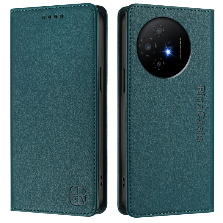 Funda de Cuero con Doble Pliegue y Succión Magnética RFID para TCL 50 XL 5G RC01 (Verde Oscuro)