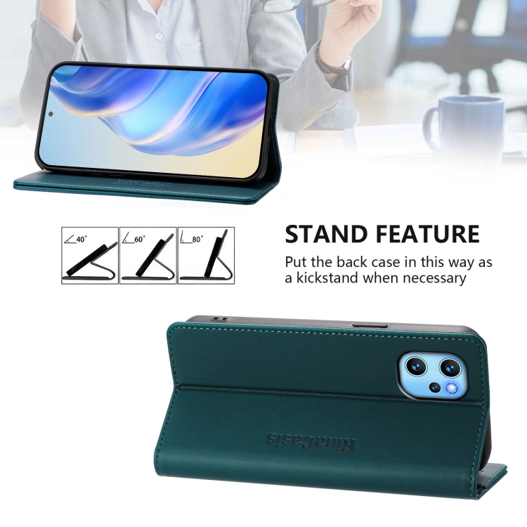 Funda de Cuero con Doble Pliegue y Succión Magnética RFID para Umidigi Power 7 Max Rc01 (Verde Oscuro)