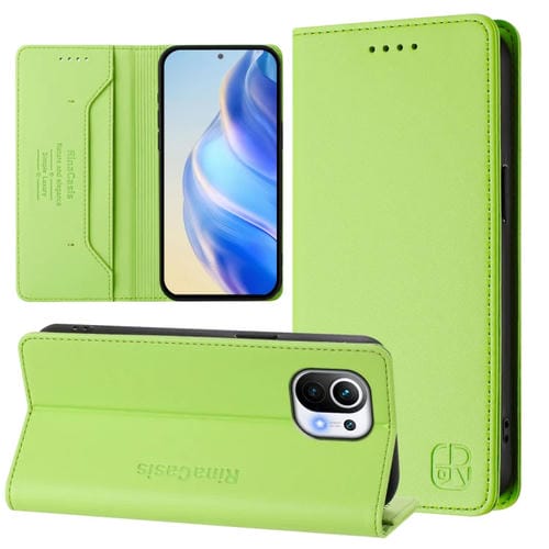Funda de Cuero con Doble Pliegue y Succión Magnética Rfid para Xiaomi Mi 11 Rc01 (Verde Hierba)