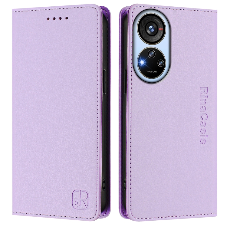 Funda de Cuero con Doble Pliegue y Succión Magnética Rfid para ZTE Blade V40S Rc01 (Morado Claro)