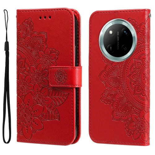 Funda de Cuero con Estampado Flores Siete Pétalos para Honor X9C/Magic7 Lite (Rojo)