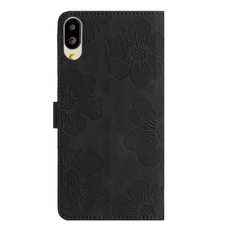 Funda de Cuero para Teléfono Sharp Basio Active Shg09 con Estampado de Flores (Negra)