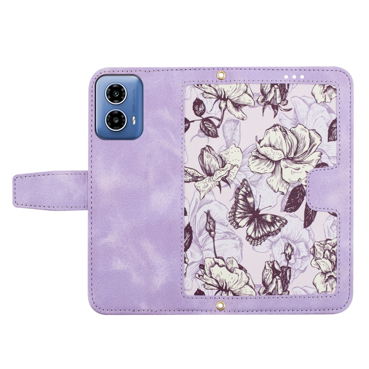 Funda de Cuero con Estampado Floral para Motorola Moto G 5G (2024) con Cordón (Morado Claro)
