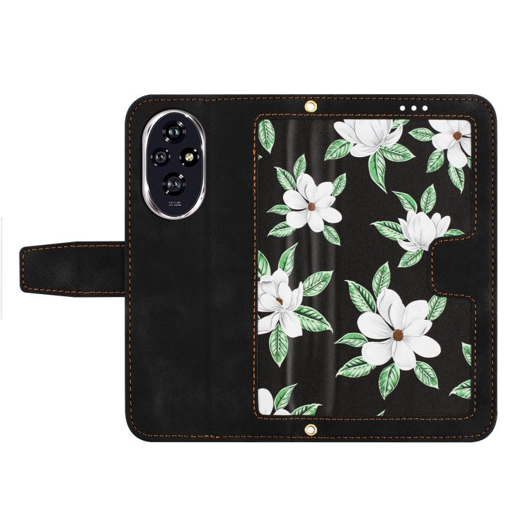 Funda de Cuero con Estampado Floral y Cordón para Teléfono For Honor 200 (Negro)