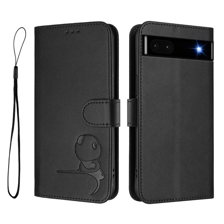 Funda de cuero con estampado RFID y cordón para Google Pixel 6a (negro)