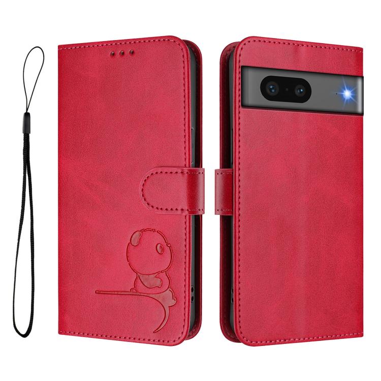 Funda de cuero con estampado RFID y cordón para Google Pixel 7 (rosa y rojo)