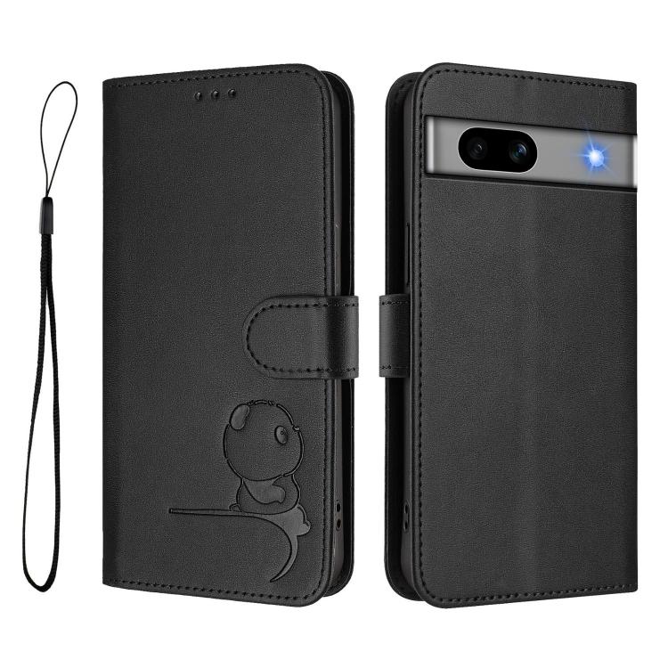 Funda de cuero con estampado RFID y cordón para Google Pixel 7a (negro)