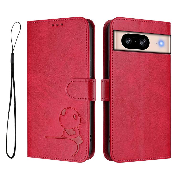 Funda de cuero con estampado RFID y cordón para Google Pixel 8 (rosa y rojo)