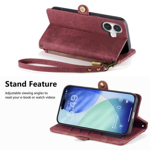 Funda de cuero con hebilla lateral y cremallera geométrica para iPhone 17 (roja)