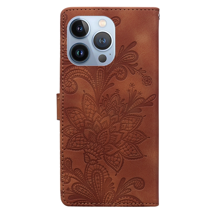 Funda de Cuero con Hebilla Magnética y Diseño Floral En Relieve para iPhone 15 Pro Max (Marrón)