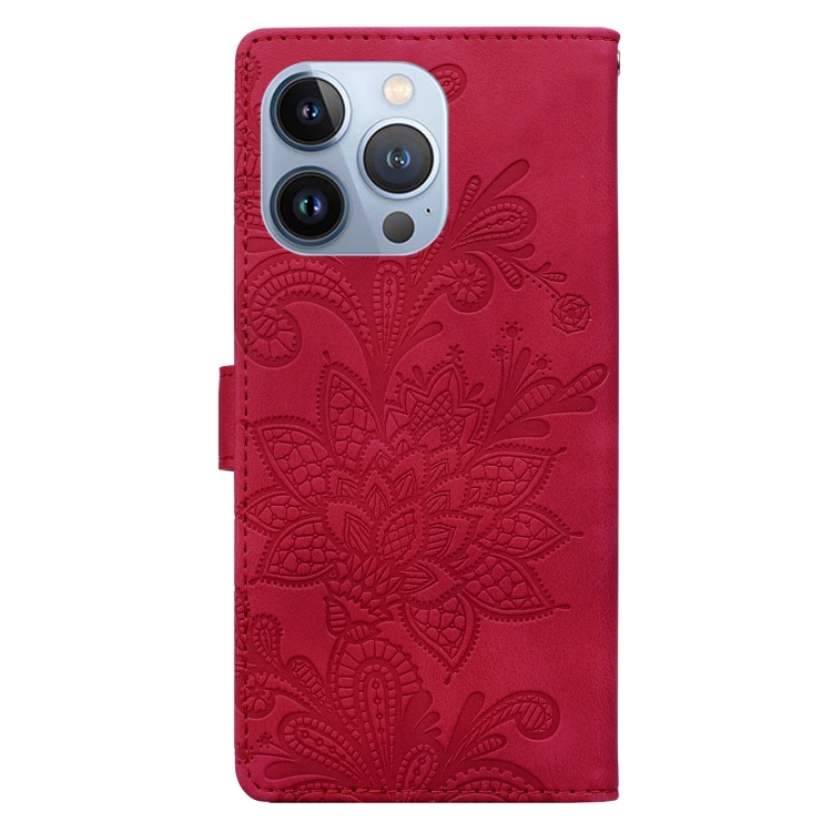 Funda de Cuero con Hebilla Magnética y Encaje Floral para iPhone 14 Pro Max (Rojo)