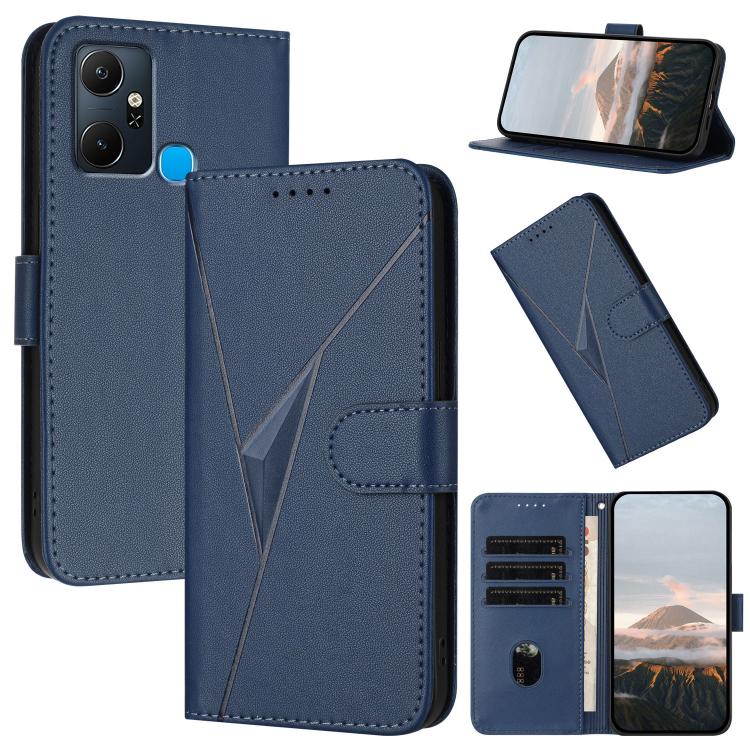 Funda de Cuero con Hebilla y Diseño Triángulos para Infinix Smart 6 Plus (Azul Real)